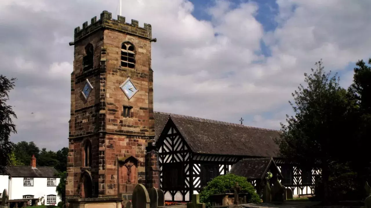 Tucked among a small group of buildings that includes a pub, an old school and cottages is one of England's most ancient timbered churches.