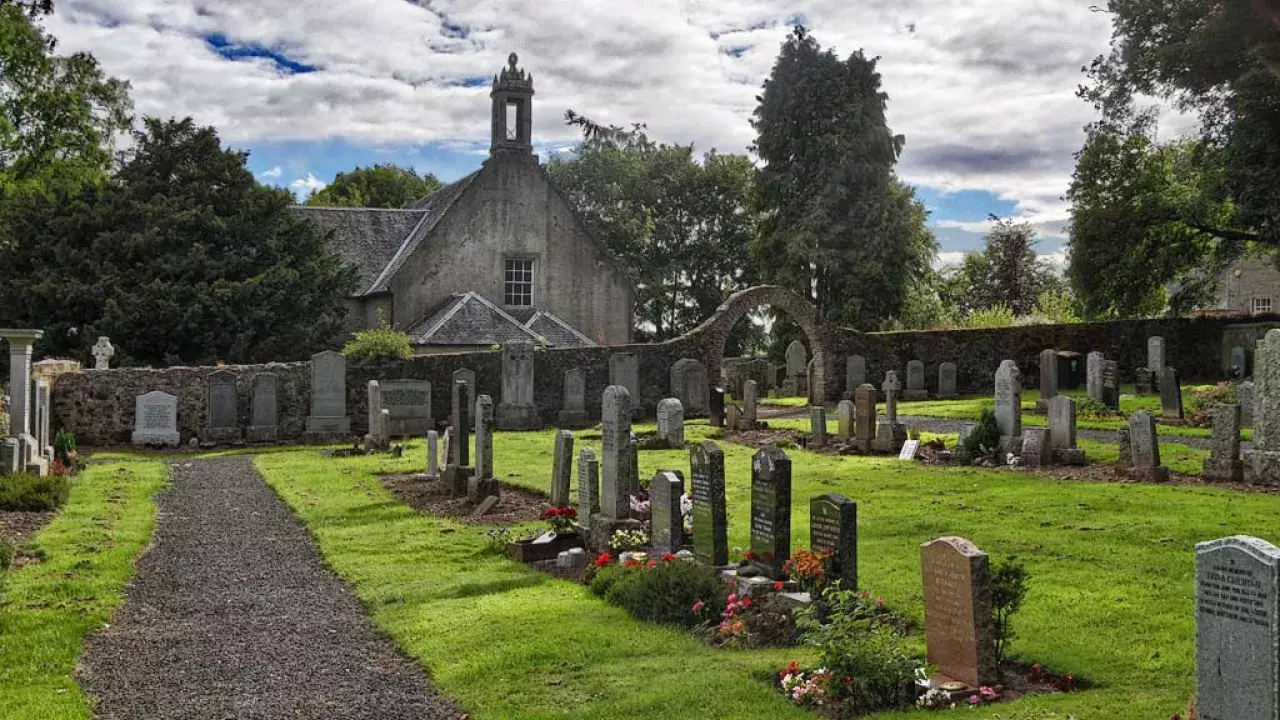 The present church dates from 1632, though the site has been a place of worship from the Middle Ages onwards. The church was remodelled and enlarged in 1789 to designs by James Scobie, made T-plan in 1808 and the interior refurnished in 1874. The present interior is little altered since that date. The graveyard contains many monuments of interest, in particular the exceptional memorial to James Ritchie, displaying his curling equipment and the recumbent figure of his bull.