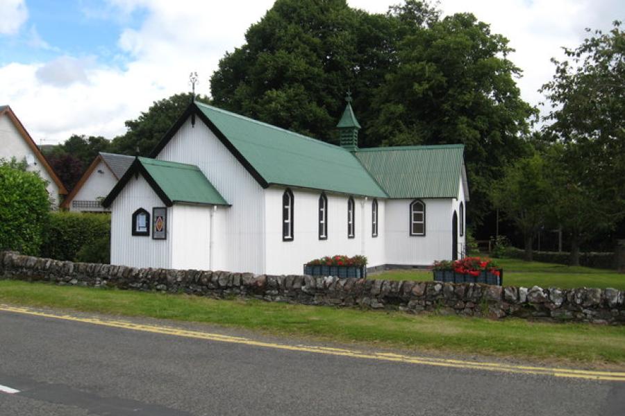 Completely different is St Fillan, Killin. Built in 1876 by the Earl of Breadalbane for private use by shooting parties, the church earned the name Grouse Church among locals. It has been in almost continual use since then. This tin tabernacle was bought in kit form from a manufacturer, likely to be the London Iron Church and Chapel Company, in which the Earl held shares.