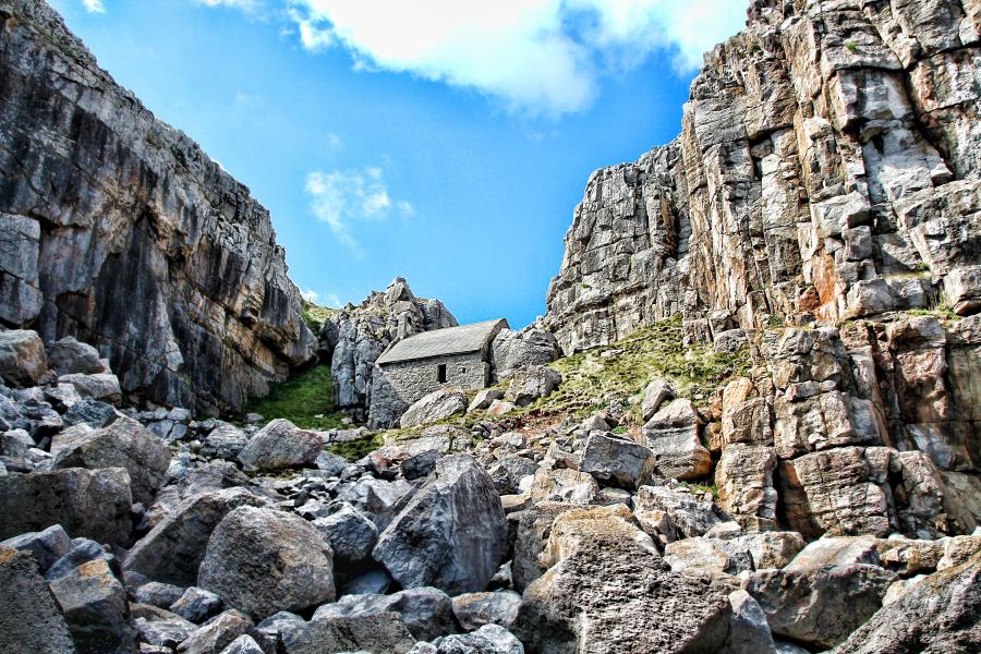 It is thought to date from between the 11th and 13th centuries, but there may have been a chapel here in the 6th century, established by St Govan, an Irish monk who legend has it, was being chased by brigands when a fissure opened in the cliff face.