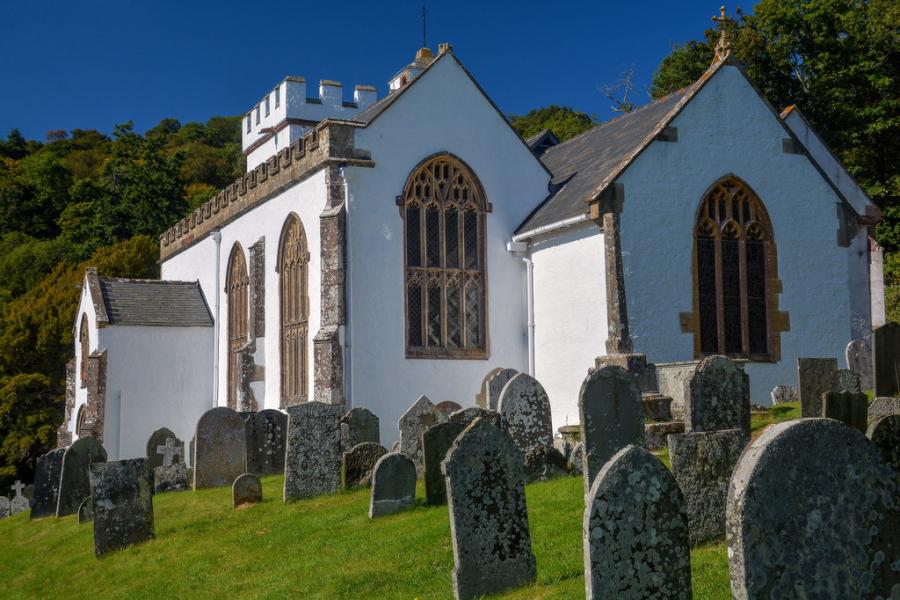 The first record of the tiny church of St Beuno, Culbone in the Domesday Book. It is probably of preNorman origin, although it has been restored many times it still has its original Saxon font. The church is considered to be the smallest in England, seats about 30 people and is very atmospheric as it is lit by candlelight. It can't be accessed by road, so you'll need to park on a narrow track and then walk a mile and a half through woodland before the church appears. It's a really magical experience!