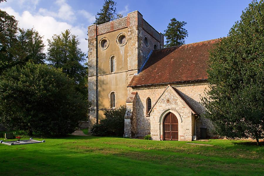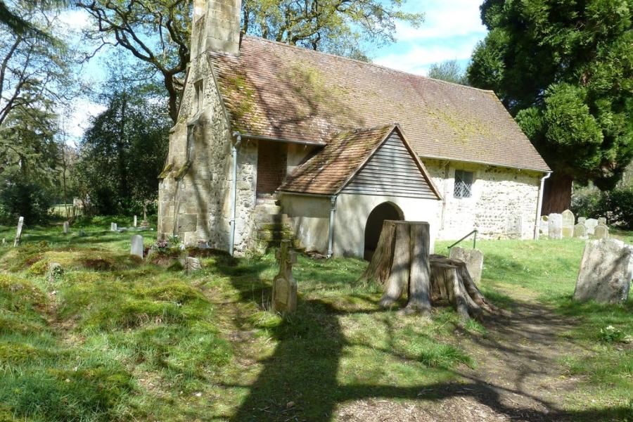 'The Little Church in a Field' is open every day. St Hubert, Idsworth is remarkable for its solitary position and for unusual wall paintings from the 1330s which were mistakenly believed to depict a scene from the conversion of St Hubert but actually reveal the Hairy Anchorite or wherewolf from a central European legend.