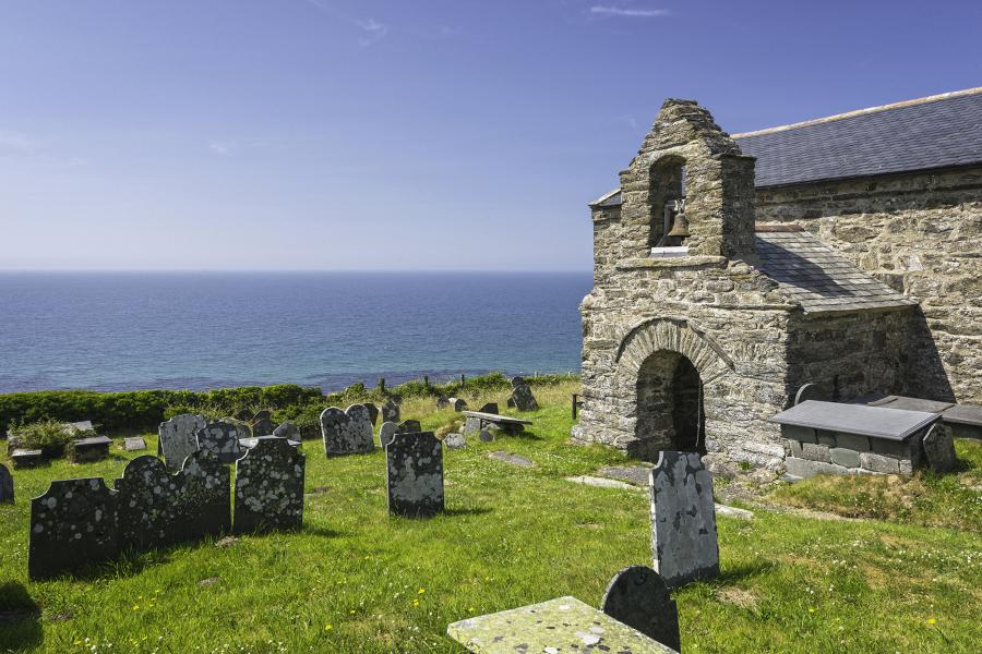 Also along the cliff is ancient St Gwyndaf, Llanwnda. Overlooking the Atlantic, it was founded in the 6th century, is a ‘palpable reminder of the early saints’ liking for the isolated and the elemental'. It's the perfect place to see from both land and sea on a kayaking pilgrimage. This was the last place to be invaded in Britain. In 1797 French marauders scrambled up the cliffs here one dark and stormy night and took solace in the church. They reputedly lit a fire with the pages of the bible, now kept in a display case with its charred pages on view!