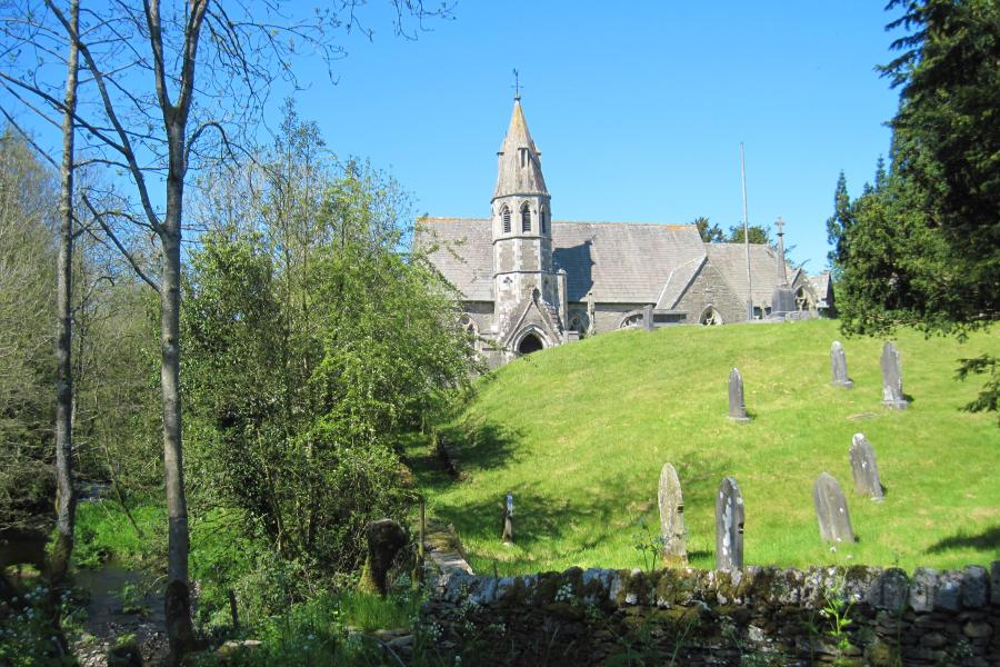 You will find good walking around St John the Evangelist, Helsington. Built in 1726, the church commands extensive views across the Lyth valley towards the distant Lakeland fells and Morecambe Bay. The churchyard is a tranquil place to sit awhile, in spring a carpet of snowdrops, then daffodils and later wild flowers.