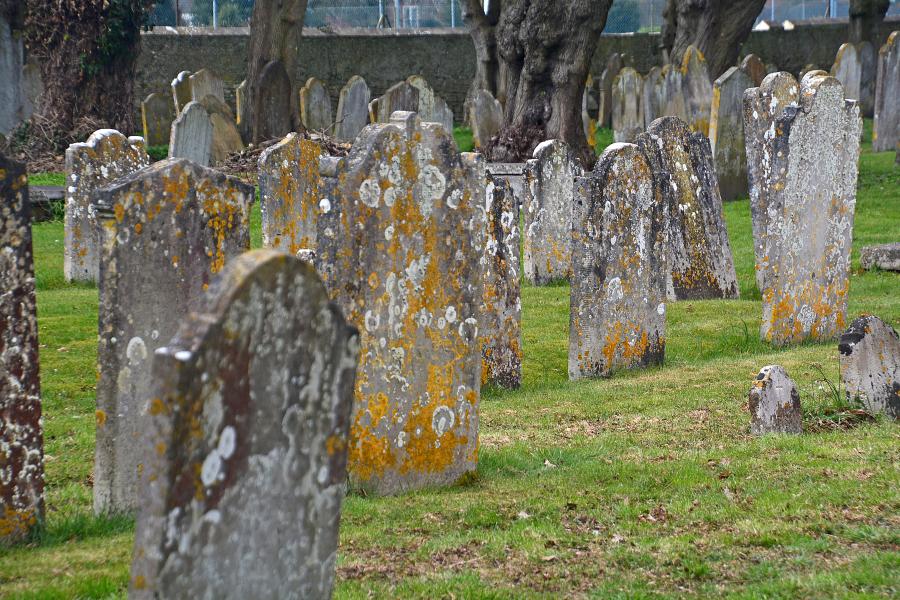 A wealth of historic material remains, including a superb late 15th century wooden screen, made of Irish bog oak and intricately carved. Look for figures of a fire breathing dragon, St Mary the Virgin, and St John the Apostle. On the west wall is a Doom, or wall painting depicting the Biblical Day of Judgement. Even more impressive is the striking figure of Time, in the form of a skeleton, holding the traditional scythe and hourglass, as well as a spade. The meaning would have been clear, even to a largely illiterate population; your days are numbered, so use them wisely. According to legend, the painting has been covered with whitewash several times but each time it mysteriously reappears.