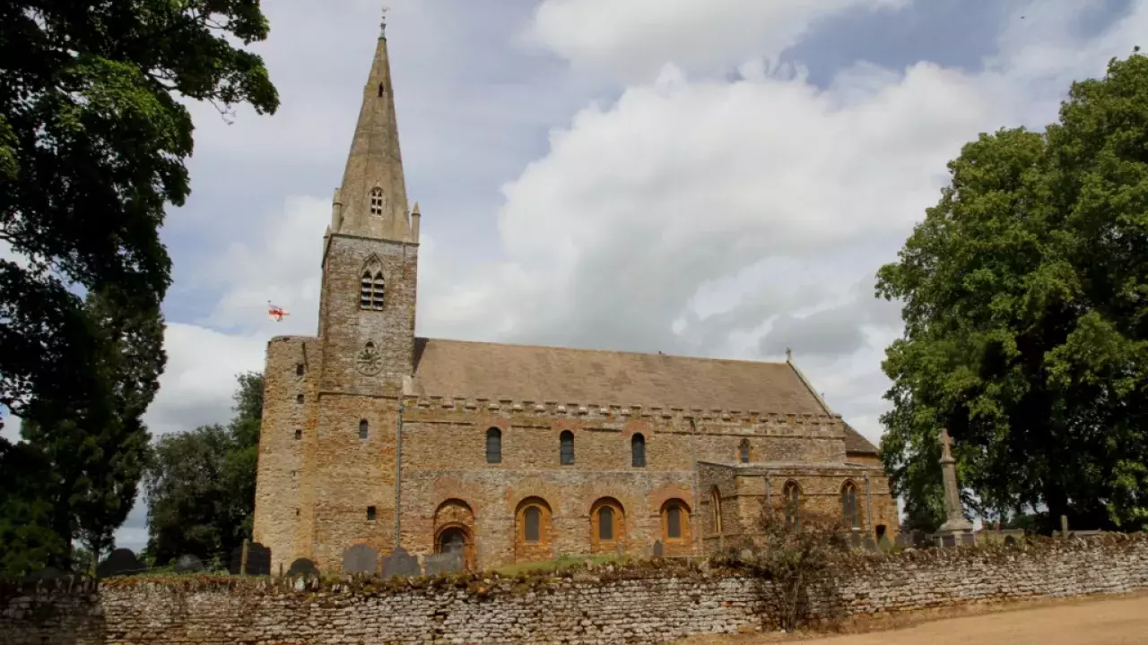 The exterior reveals impressive use of Roman building materials; slim bricks, stone and larger pieces of masonry apparently derived from Roman buildings in Leicester and Towcester. The tower is especially impressive with an austere almost round staircase tower attached.