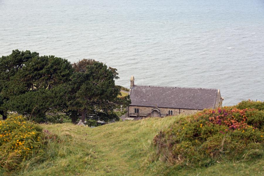 Ond mae yna rywbeth hefyd ynghylch y lleoliad. Rhywbeth ynghylch yr union leoliad hwn. Mae’n anodd daro’r hoelen ar ei phen. Nid oedd yn bosib i chi hyd yn oed weld yr eglwys nes i chi fod yn wyneb yn wyneb â hi. Mae’n ymddangos yn amhosib y gallai eglwys fod yn y fan hyn, mor bell o ddynol ryw, wedi ei chysgodi gan y mynyddoedd a’i golwg tua’r môr, bron yn hollol ddiarffordd, o fewn cyrraedd ar droed yn unig.