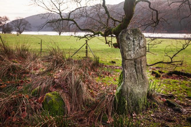 The third leg is a 6 mile walk, mostly at loch level, following a core path through the two shooting estates of Glenstriven and Ardtaraig. Unfortunately, the Glenstriven Estate has let the path to the rear of their grounds become so overgrown as to be almost impossible to see. But if you follow our guide, you’ll soon reach the Ardtaraig Estate, which has done a much better job of keeping the path clear. The footings found at Ardtaraig Chapel are well protected by a circle of trees and an early medieval cross slab. Alas, nothing is known about the history of this chapel or the stone.