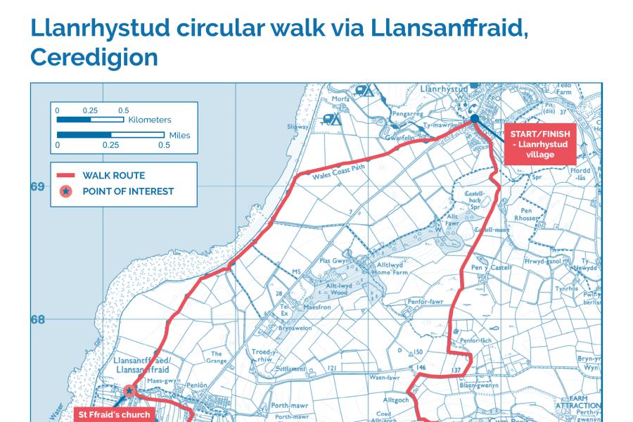 Llanrhystud circular via Llansantffraed